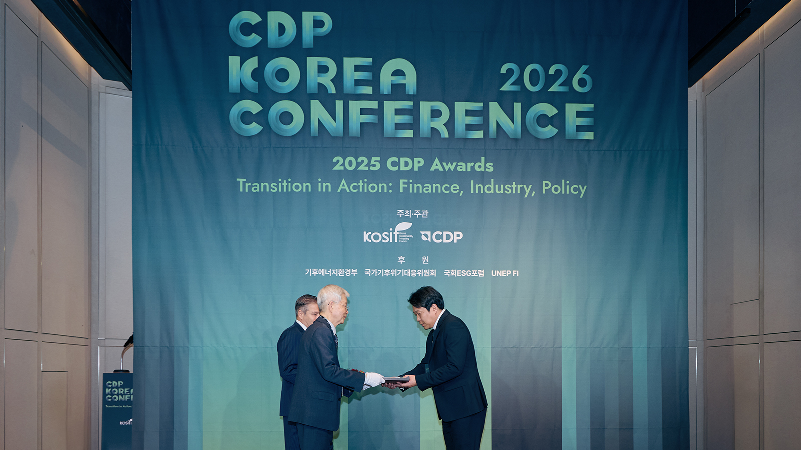 ▲ 2025 CDP Korea Awards에서 수상 중인 조재현 부사장(정책대응 담당, 오른쪽)