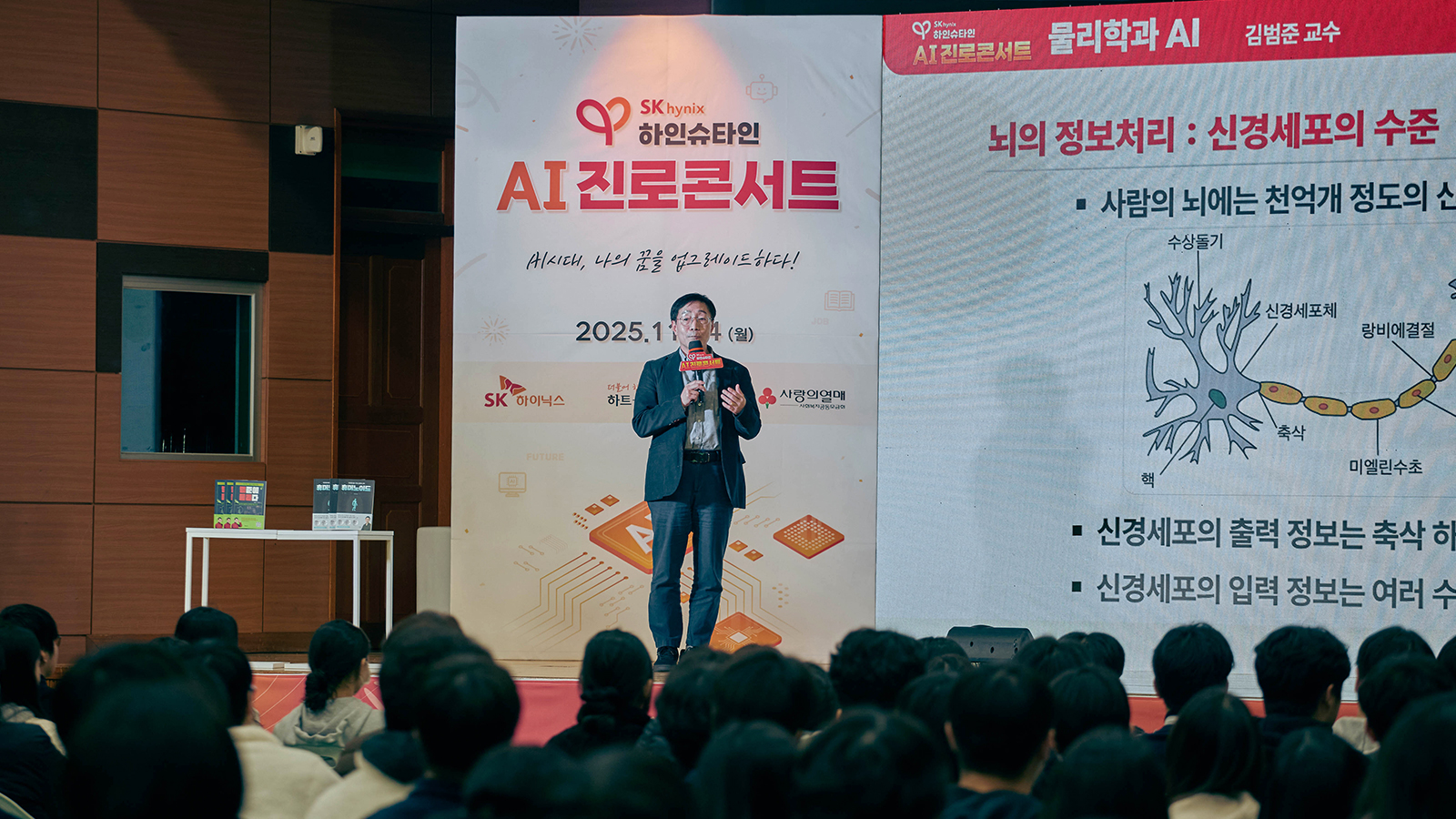 이후 청소년 눈높이에 맞춘 다양한 전문가 특강이 이어졌다. 첫 번째 연사로 나선 성균관대학교 물리학과 김범준 교수가 ‘물리학과 AI’를 주제로 진행했다. 김 교수는 일상의 다양한 현상을 물리학의 시각으로 풀어내며, 기초과학이 AI·반도체 기술의 기반이 되는 원리를 소개했다. 그는 “기초과학에 대한 이해가 학생들이 다가올 AI 시대를 준비하는 데 큰 도움이 될 것”이라며 “이번 강연이 미래 기술에 대한 호기심을 키우고 시야를 넓히는 계기가 되길 바란다”고 전했다.