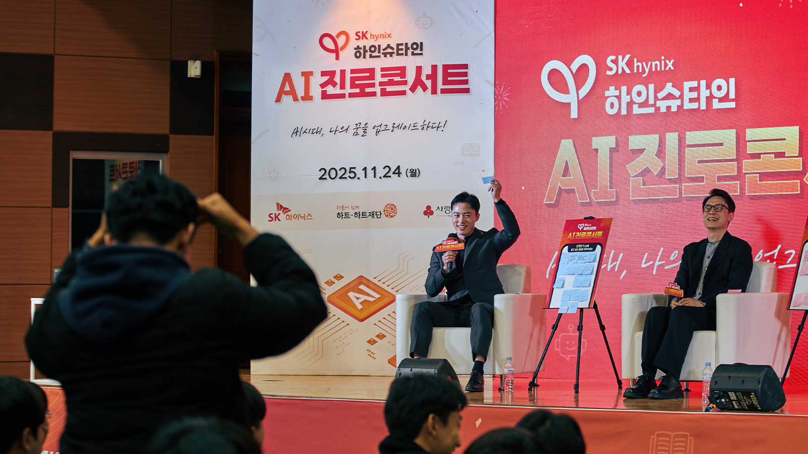 SK하이닉스가 지난 24일, 경기도 안성시 경기창조고등학교에서 ‘하인슈타인 AI 진로콘서트’를 개최했다. 이번 행사는 AI 시대에 필요한 핵심 역량을 청소년들이 직접 체험할 수 있도록 마련됐으며, 실시간 유튜브 라이브를 통해서도 함께 참여할 수 있도록 운영됐다.