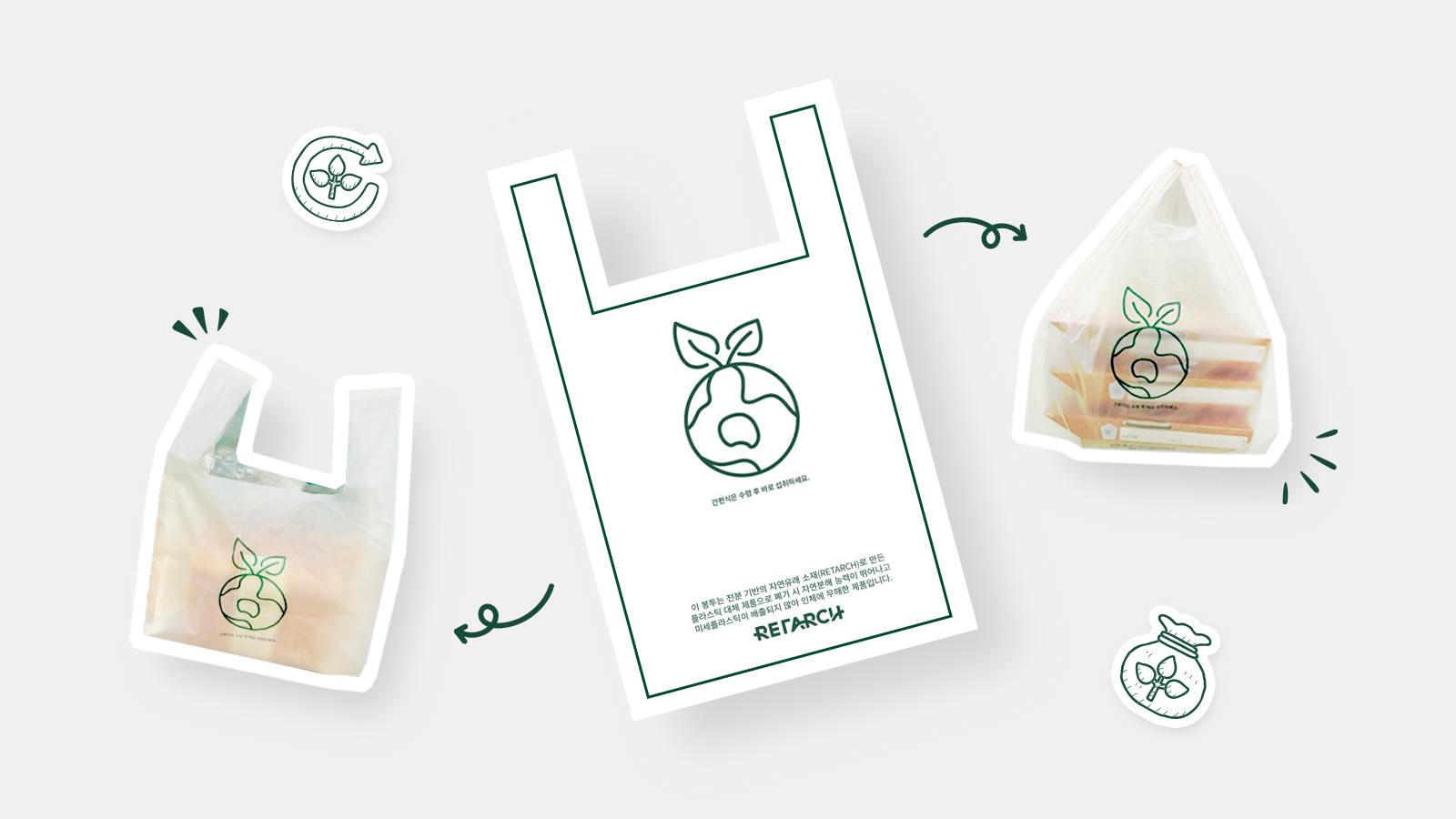 ▲ 리타치(RETARCH) 소재 생분해 플라스틱으로 제작한 간편식 포장 비닐을 통해 탈(脫) 플라스틱을 실천하고 있다.