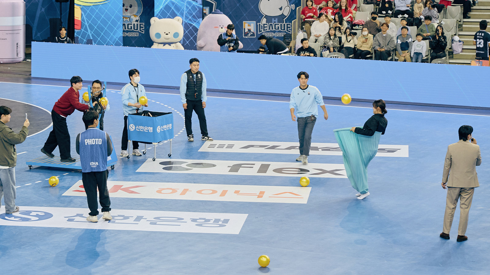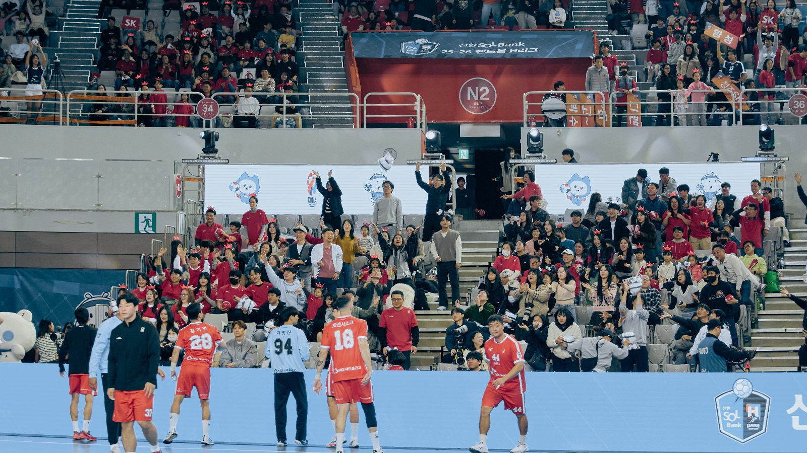 또, 여자부 선수와 팬이 한 팀을 이뤄 새총으로 공을 쏘아 선수에게 전달하는 ‘핸드볼 슈팅 게임’과 팬들이 코트 중앙의 목표물을 향해 공을 던지는 ‘열정 슈터–타깃 맞추기’ 이벤트가 진행돼 가족 단위 관람객을 비롯한 많은 팬이 함께 즐겼다.