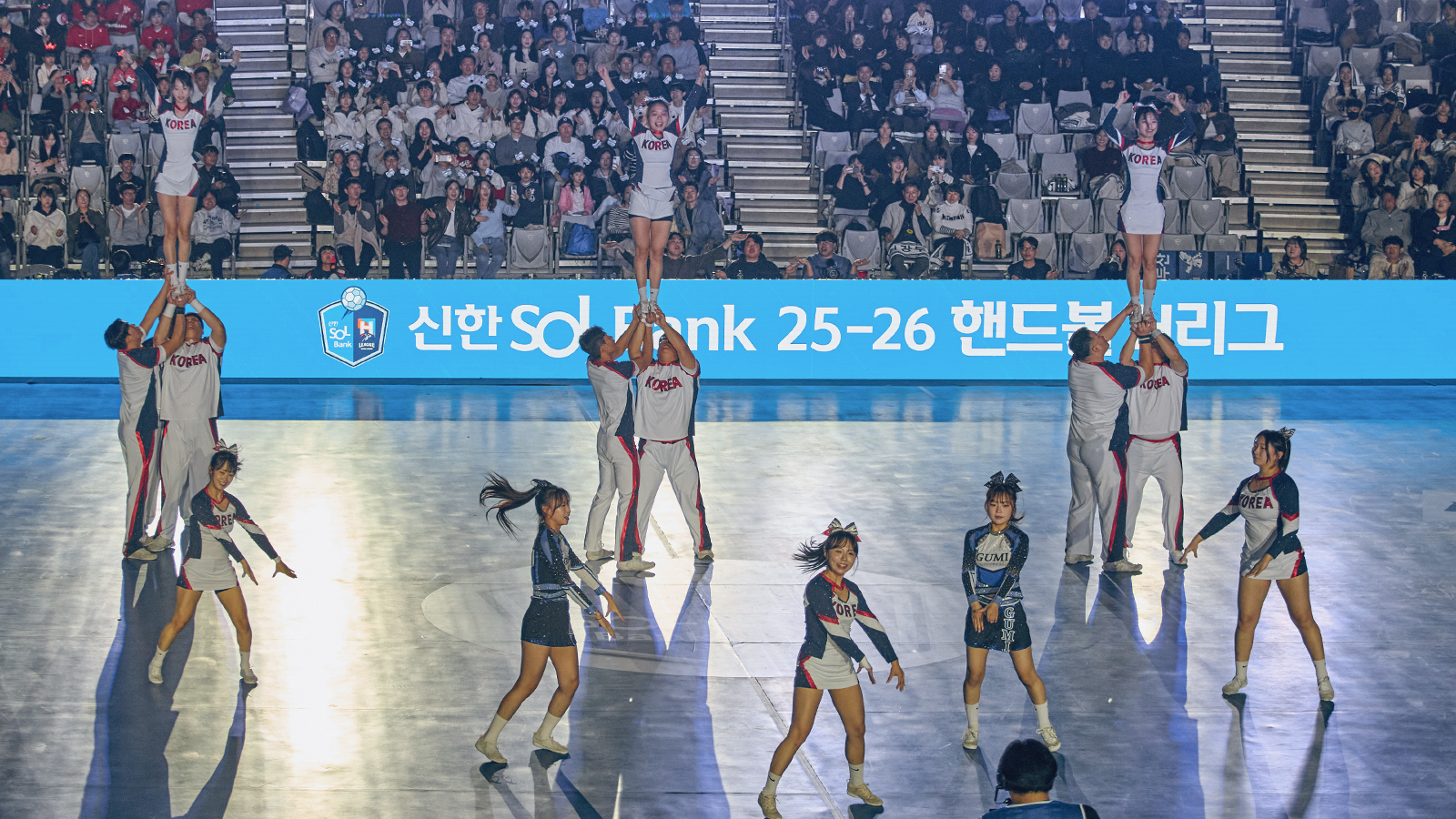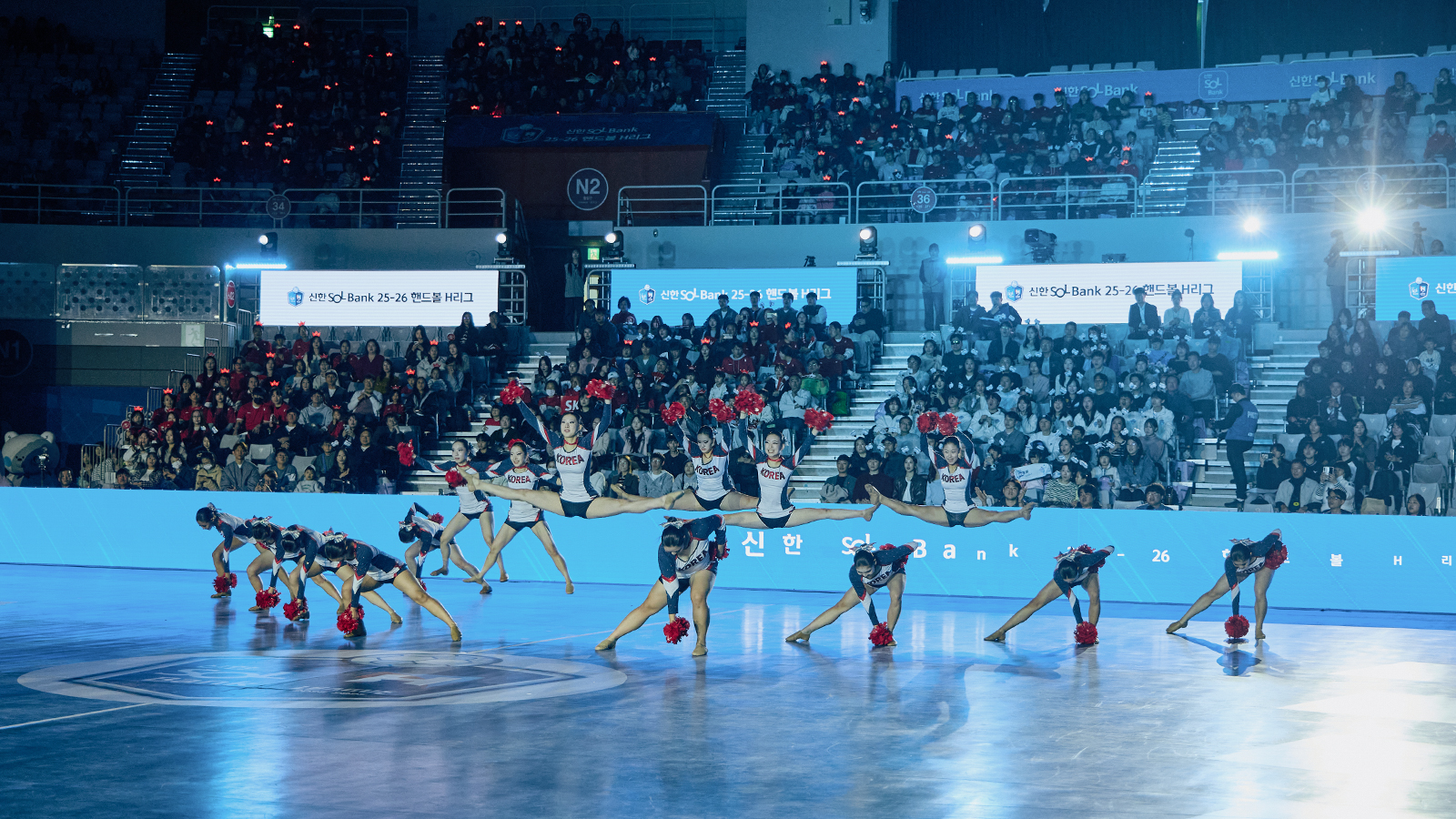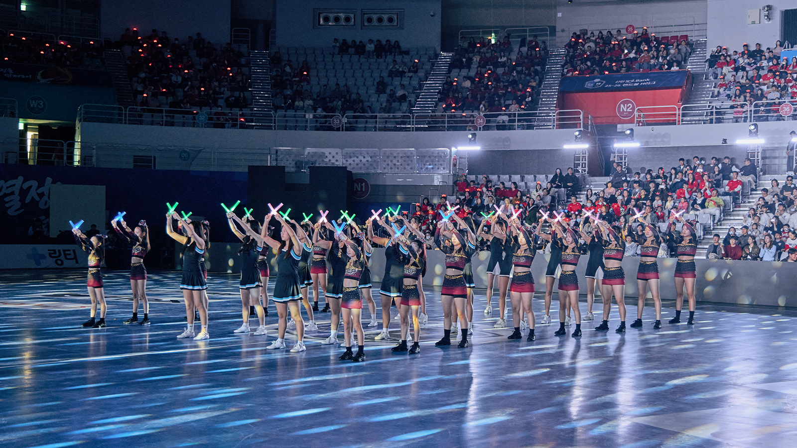 경기 시작 전에는 ‘주니어 H-탤런트 페스티벌’을 통해 전국에서 참여한 학생들이 댄스와 합창 무대를 선보였고, 스턴트 치어리딩과 태권도 시범, 합창단의 ‘골든’ 공연 무대가 어우러진 ‘TEAM H리그 응원 퍼포먼스’가 이어지며 분위기를 뜨겁게 달궜다.