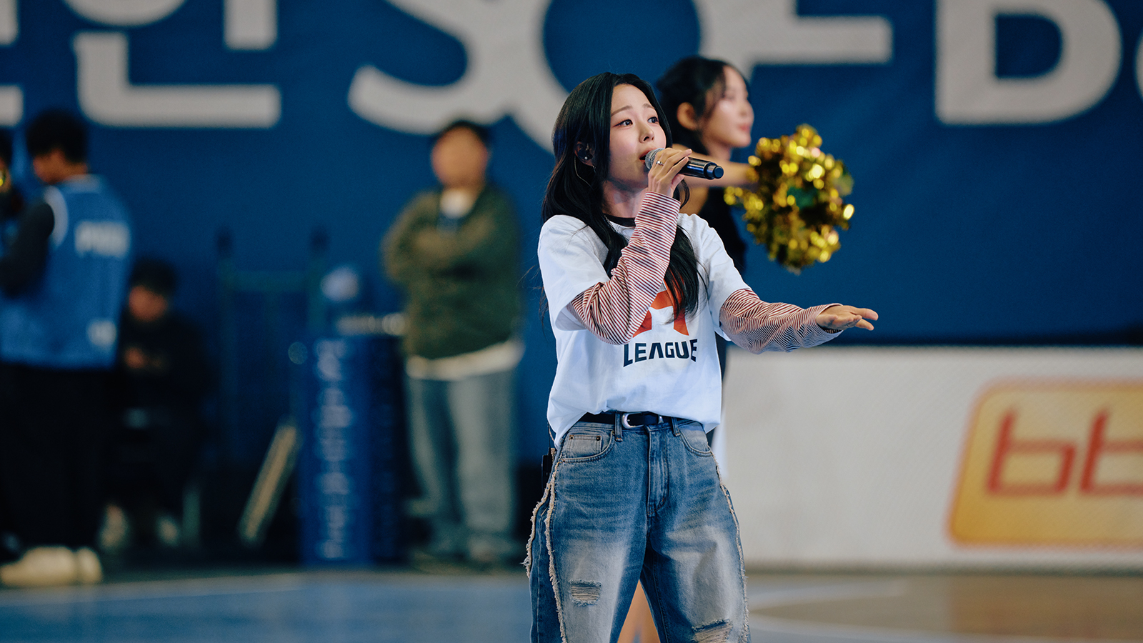 ▲ 가수 박혜원이 하프타임 무대에 올라 감성적인 무대로 새 시즌 개막을 축하하고 있다
