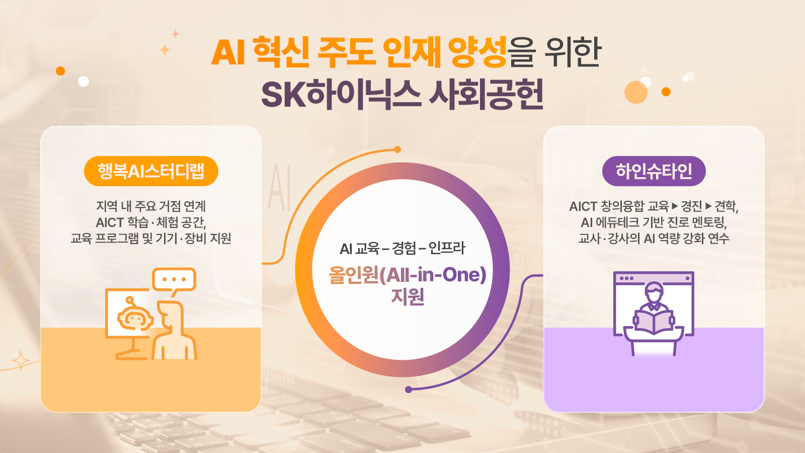 SK하이닉스는 ‘행복AI스터디랩’과 ‘하인슈타인’ 사업을 AI 인재 양성의 두 축으로 삼아, 교육·경험·인프라를 유기적으로 연결하는 ‘올인원(All-in-One)’ 사회공헌 체계를 구축하고 있다.