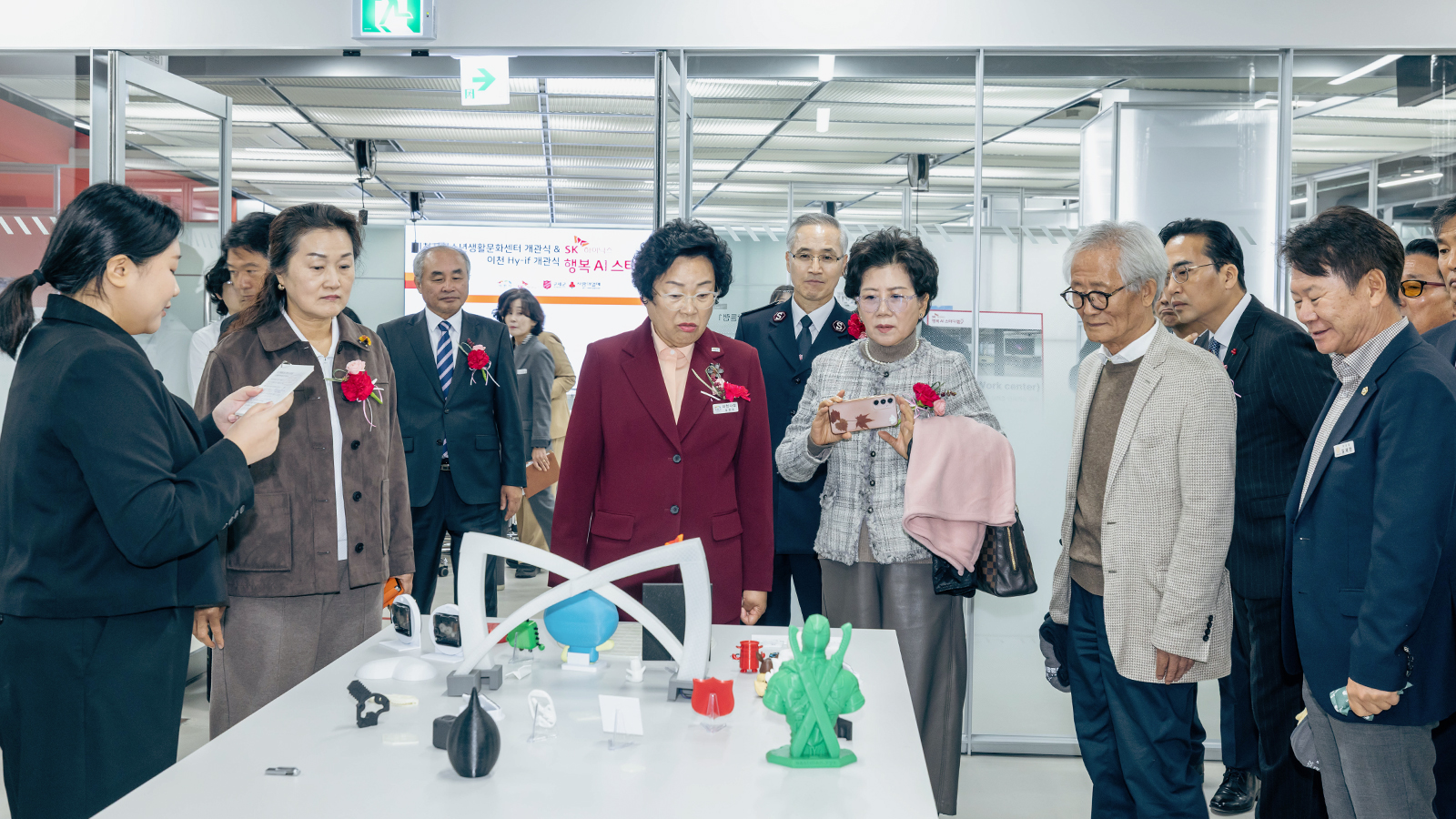 참석자들은 행복AI스터디랩 내 ‘메이커스페이스(Maker Space)’*를 둘러보며 AI 크리에이티브 툴을 활용한 3D 프린팅을 직접 체험했다. 특히 시연 과정에서 SK하이닉스 반도체 모형을 함께 제작하며, 지역과 기업이 기술로 연결되는 상생의 의미를 더했다.