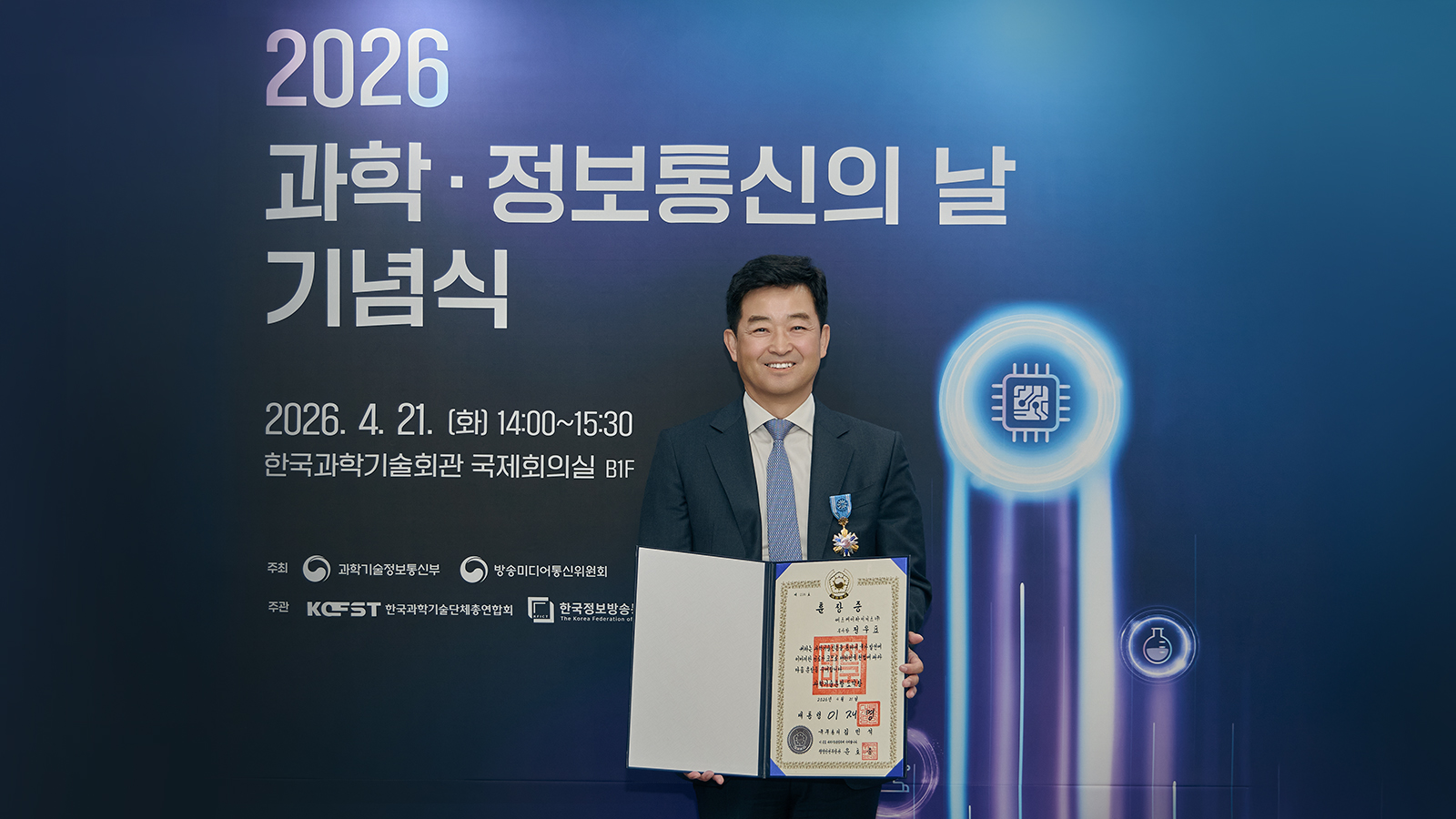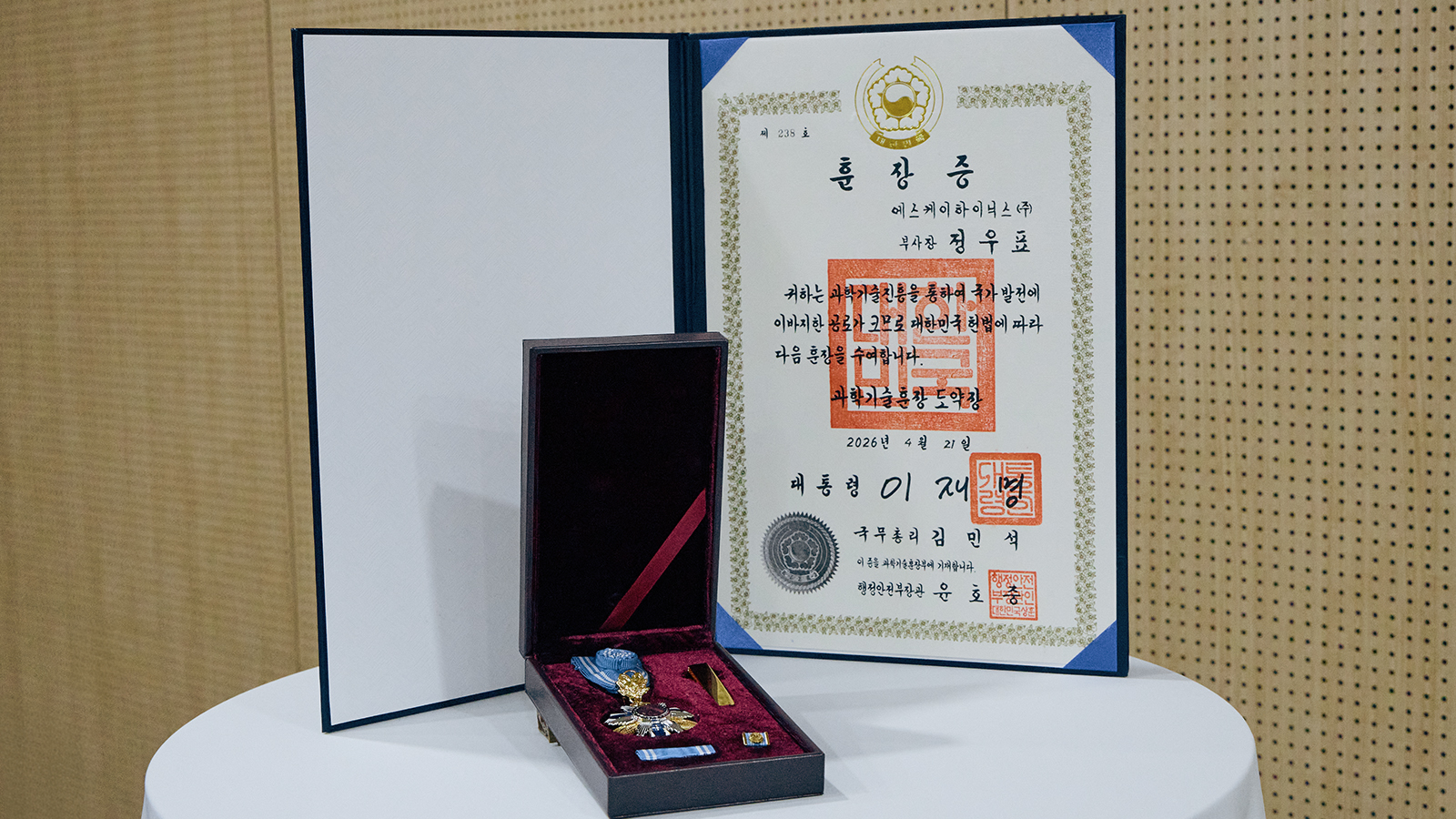 SK하이닉스는 21일 서울 역삼동 한국과학기술회관에서 열린 ‘2026 과학·정보 통신의 날 기념식’에서 정우표 부사장(NAND개발 부문장)이 과학기술훈장 도약장을 수훈했다고 밝혔다.