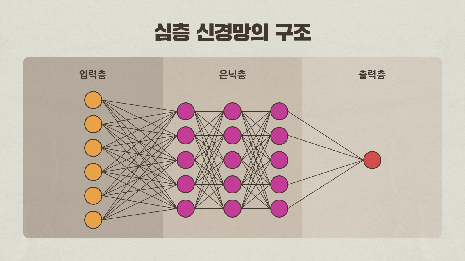 ▲ 입력층과 은닉층, 출력층으로 구성된 심층 신경망의 구조