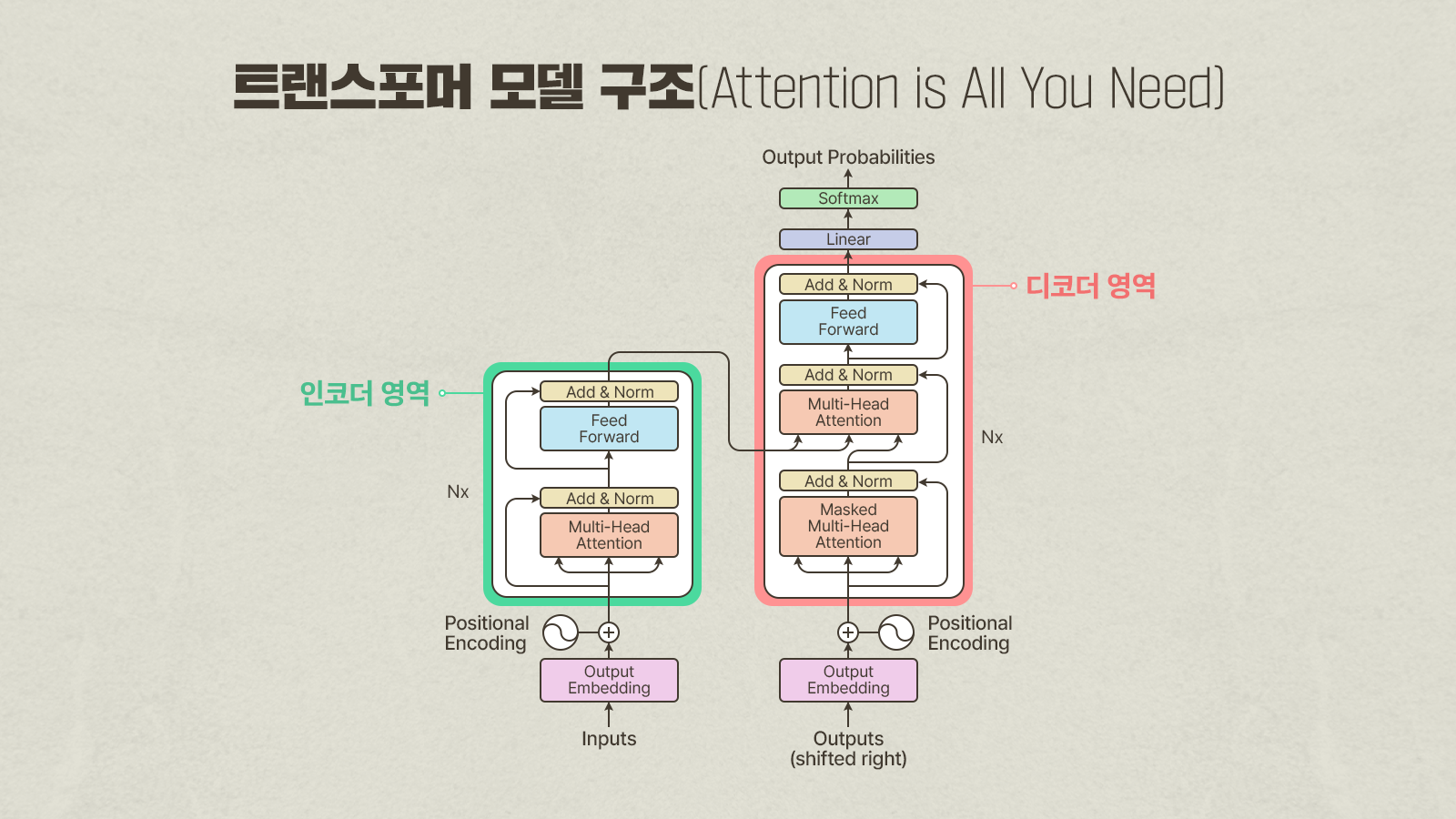 ▲ ‘Attention is all you need’ 논문에서 설명하는 트랜스포머 모델 구조