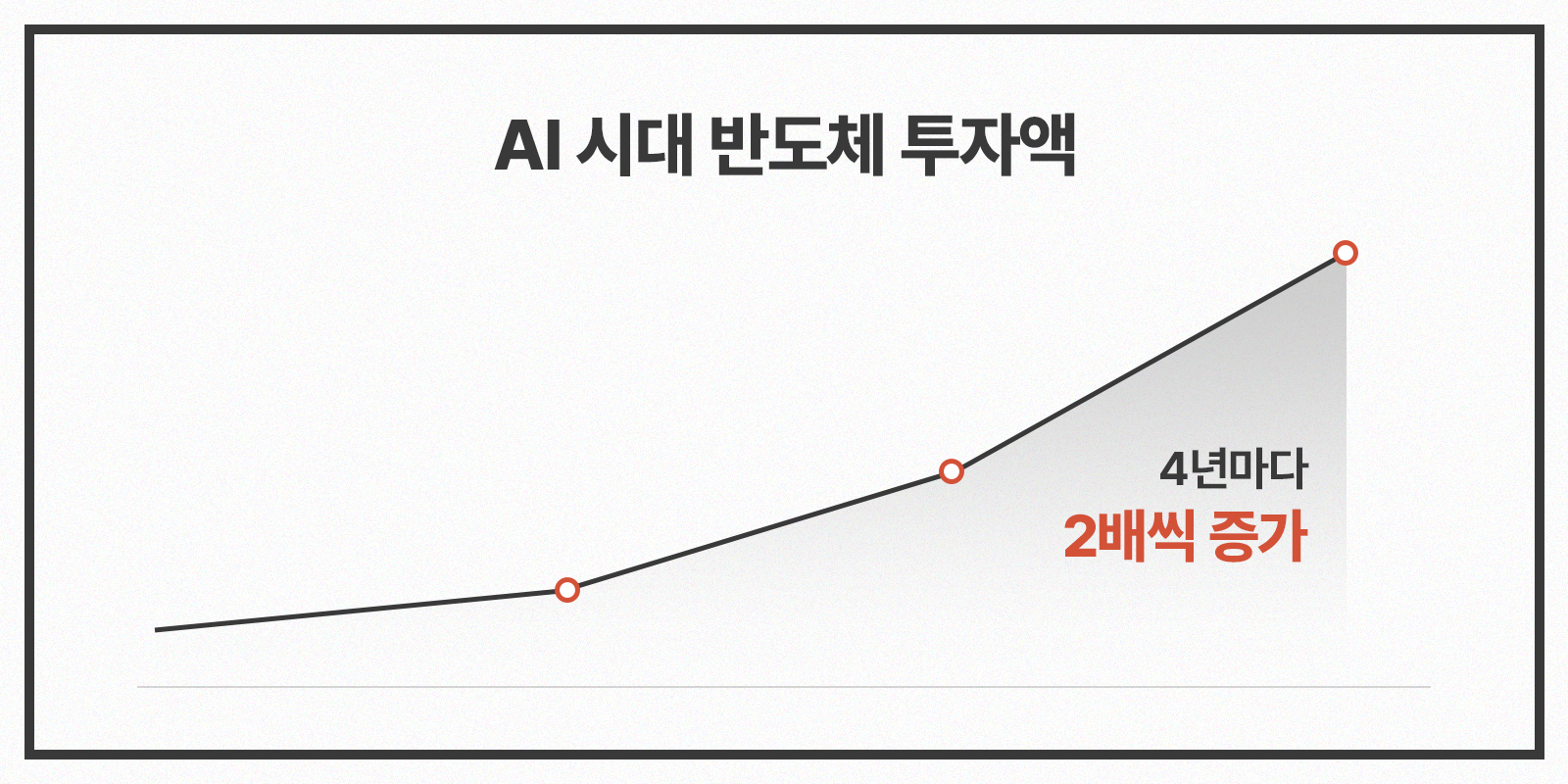 AI 시대를 뒷받침하기 위한 반도체 생산 능력 확보 과정에서 투자 규모가 근본적으로 변화했음을 보여줍니다.