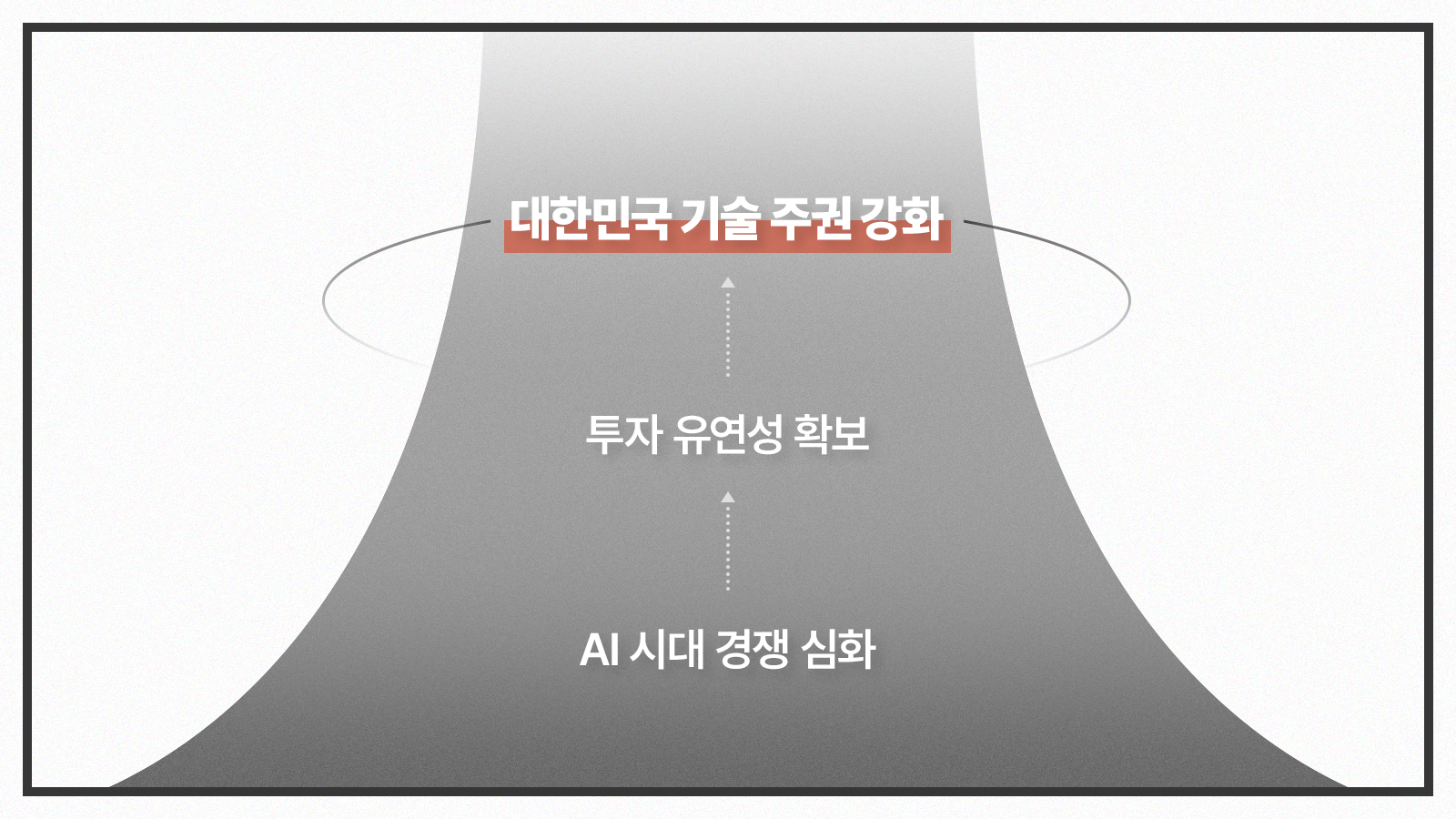AI와 첨단 기술 경쟁이 심화되는 상황에서, 투자 방식의 유연성은 곧 첨단산업 경쟁력 확보, 나아가 대한민국의 기술 주권 경쟁력 강화로 이어질 것입니다. 더불어, 국가의 전략 산업 경쟁력과 생존이 걸린 ‘투자의 골든타임’을 놓치지 않기 위한 조치입니다.