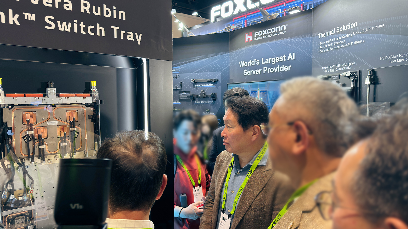 ▲ 폭스콘사(社)의 부스를 참관 중인 SK그룹 최태원 회장(가운데)