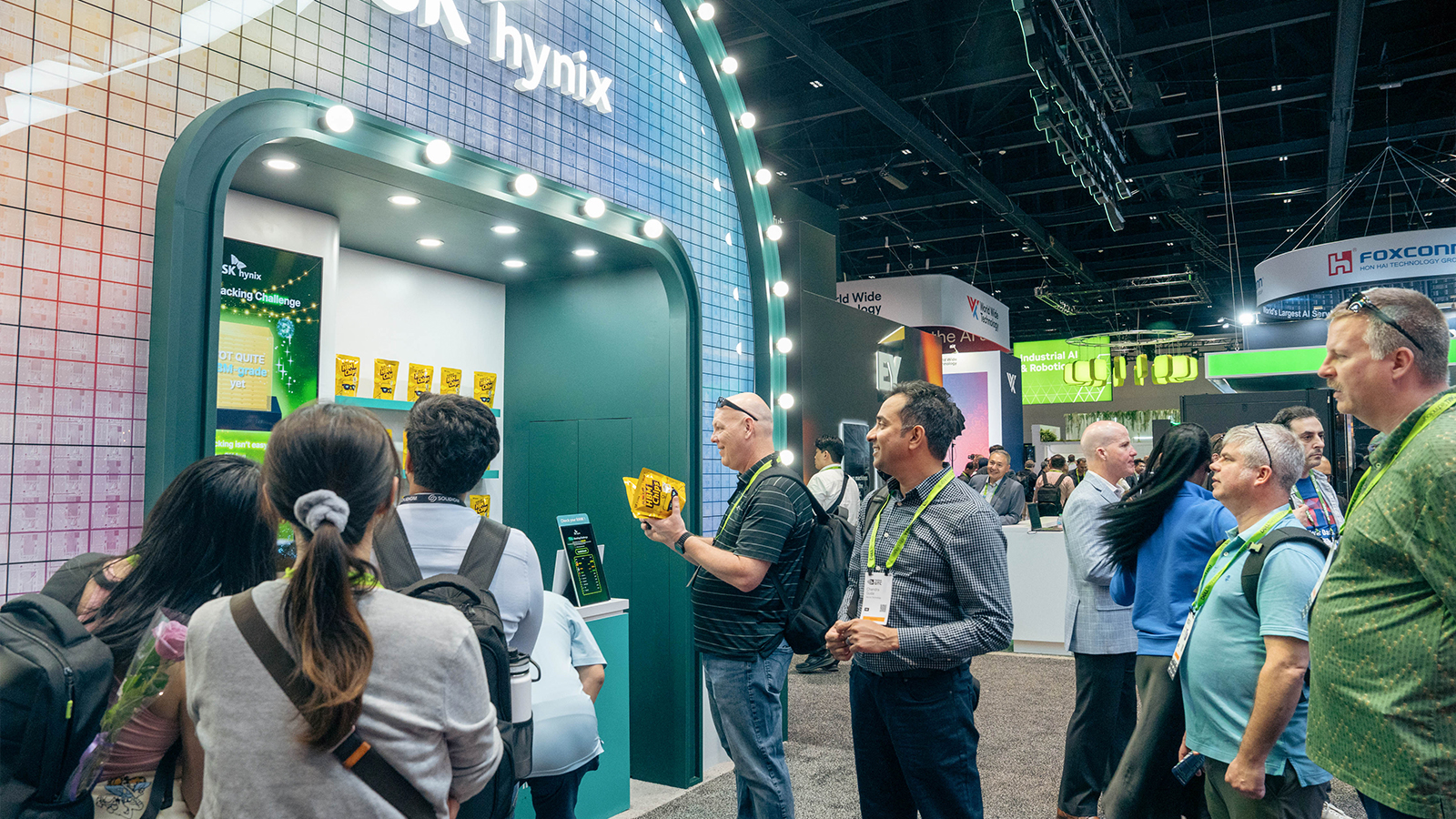 이번 전시에서 SK하이닉스는 ‘스포트라이트, AI 메모리(Spotlight on AI Memory)’를 콘셉트로 AI 시대를 이끌어갈 필수 메모리 설루션들을 임팩트 있게 보여주는 데 집중했다. 무엇보다 눈으로 살펴보는 데 그치지 않고, 직접 궁금한 제품 정보를 검색해 보거나 모형을 만져보며 세부 구조를 볼 수 있도록 인터랙티브 전시를 곳곳에 배치해 관람객들의 몰입감을 높였다.