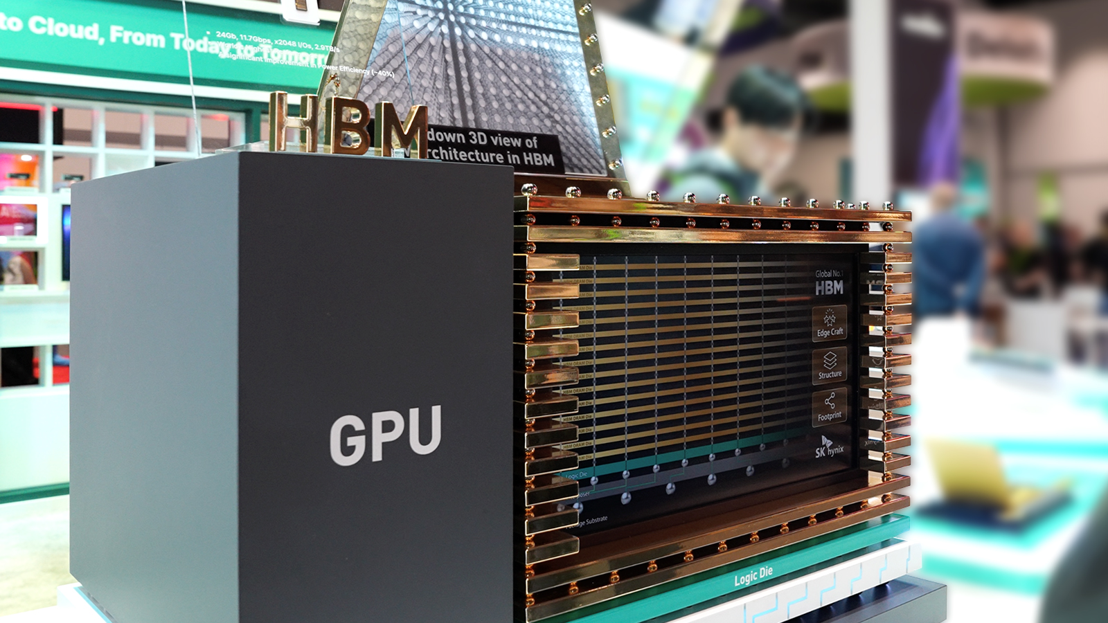 제가 SK하이닉스 부스에서 받은 느낌은 ‘메모리 반도체의 시각화에 정말 신경을 많이 썼구나’와 ‘엔비디아와의 협업을 이렇게까지 구체적으로 보여주는구나’로 요약됩니다. HBM을 100만 배 확대한 실물 모형은 전문가가 아니더라도 그 구조를 직관적으로 이해할 수 있도록 만들어졌습니다.
