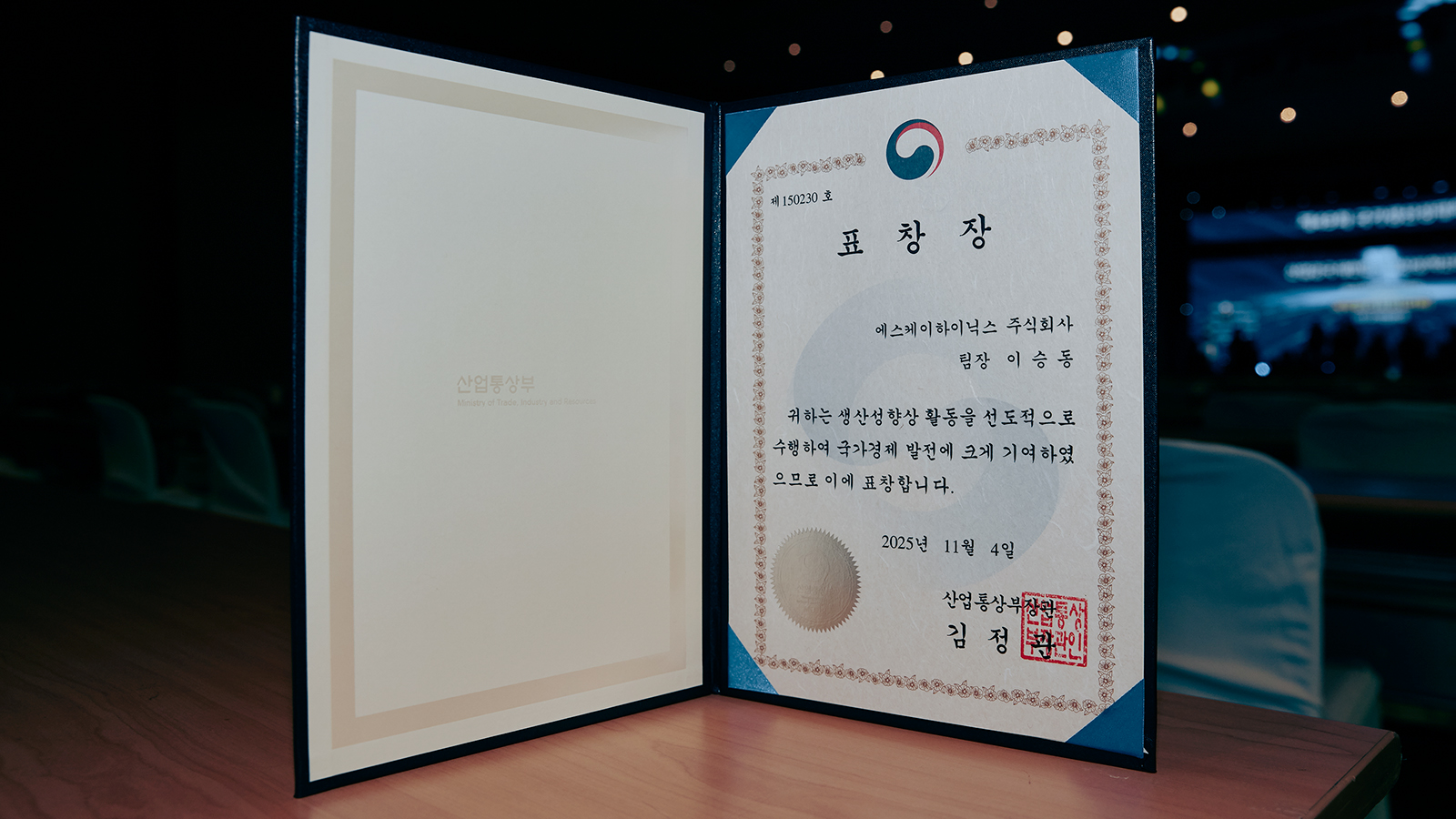 SK하이닉스 이승동 팀장, ‘제49회 국가생산성대회’서 산업통상부장관 표창 수상… ‘생산효율 높여 HBM 경쟁 우위 확보 기여’