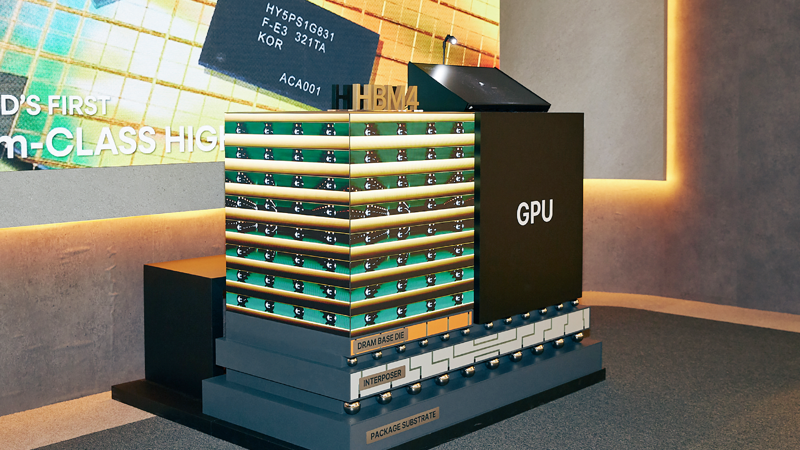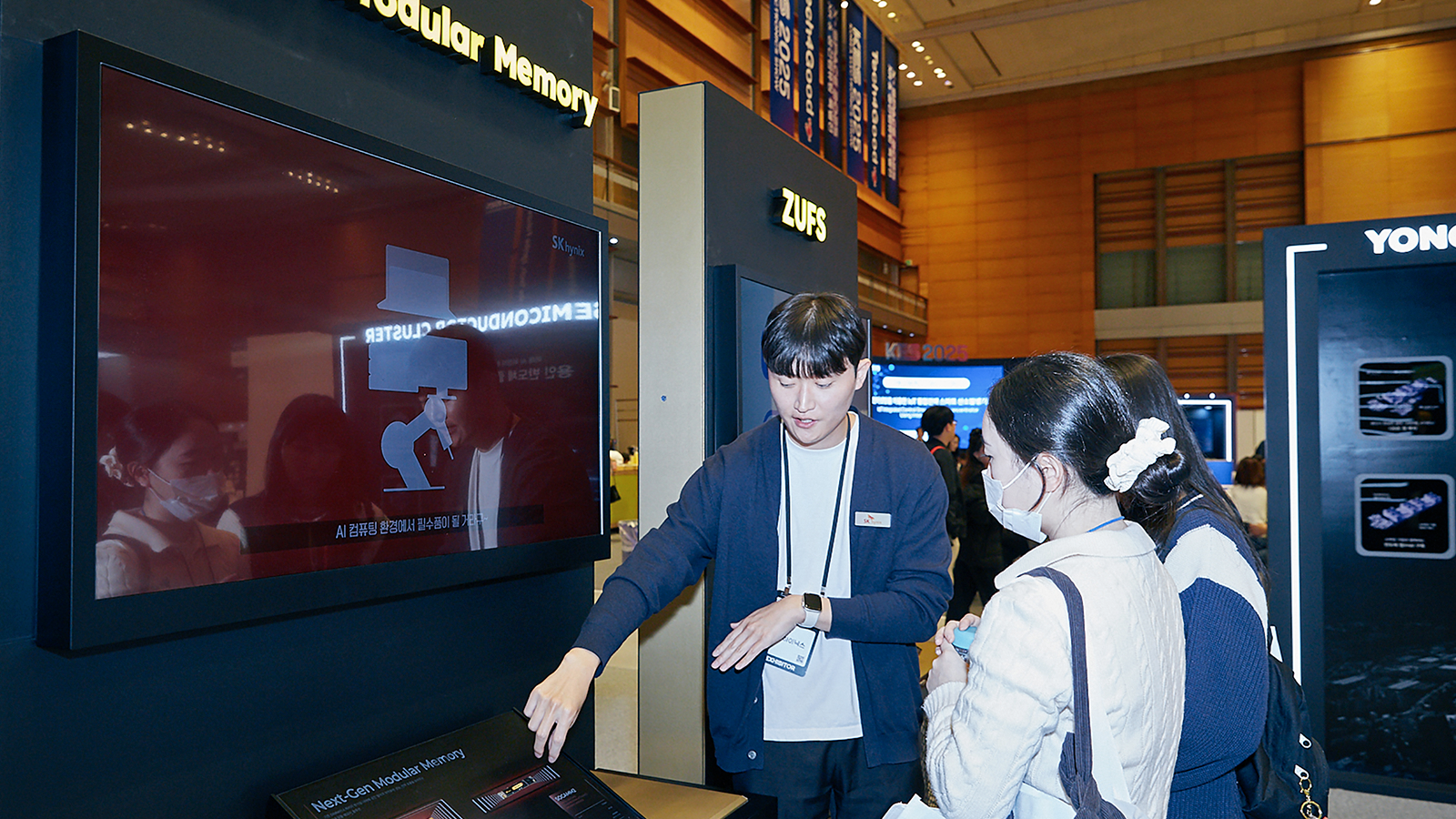 HBM 전시존 양옆에는 SK하이닉스의 주요 AI 메모리 제품을 소개하는 전시 구조물을 배치했다.