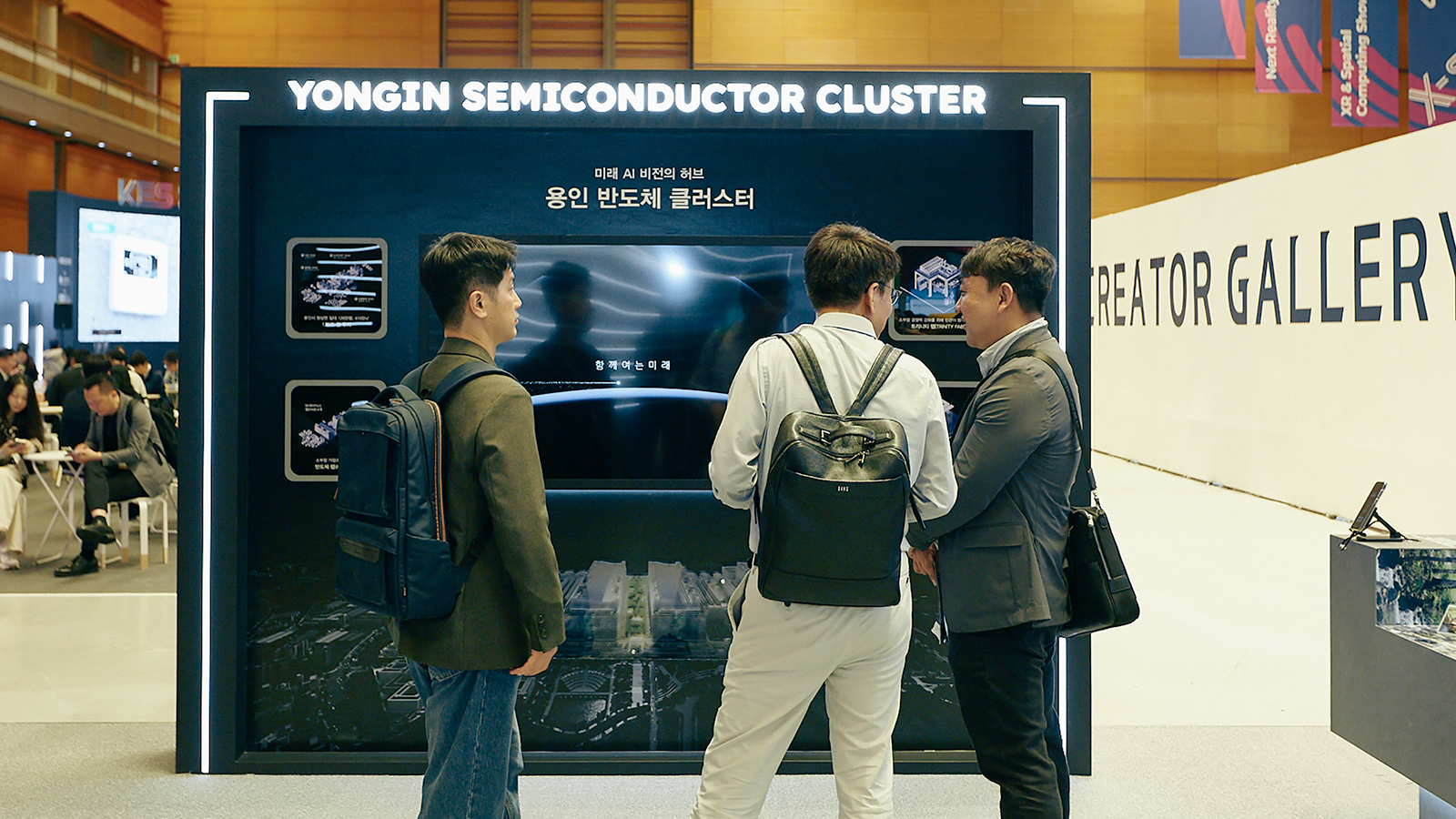 용인 반도체 클러스터 전시존에서는 SK하이닉스가 120조 원을 투자해 경기도 용인 원삼면 일대에 구축 중인 반도체 클러스터와 그곳에 구축될 트리니티 팹(Trinity Fab) 사업이 소개돼 있다. 단일 반도체 클러스터로는 세계 최대 규모를 자랑하는 용인 반도체 클러스터는 SK하이닉스가 구상하는 미래 AI 메모리 생태계의 허브로, 국내 50개 소부장(소재·부품·장비) 기업이 집결할 예정이다.