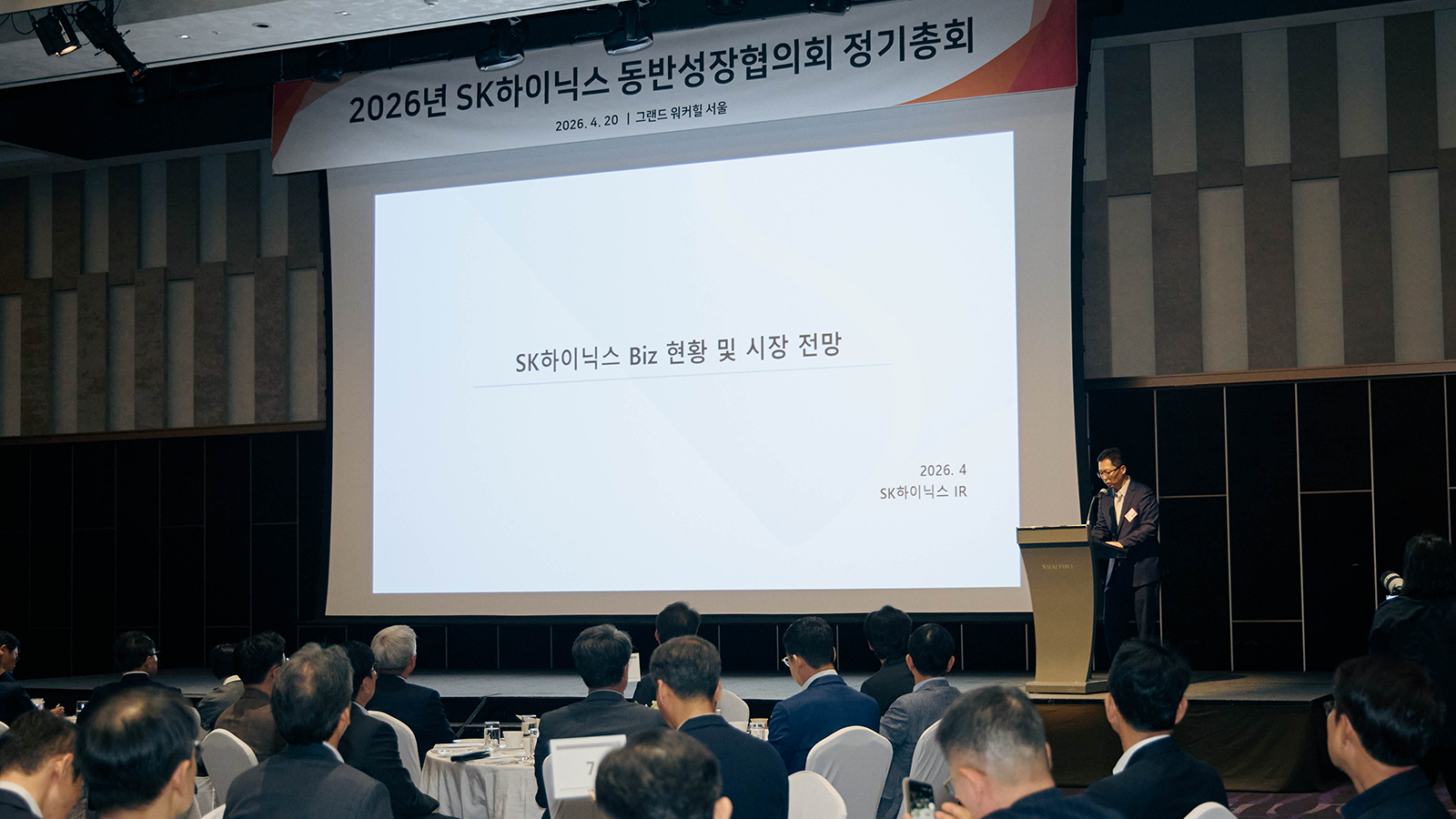 SK하이닉스는 20일 서울 광진구 그랜드 워커힐에서 ‘2026년 동반성장협의회 정기총회’를 열고, 이 같은 구상을 협력사들과 공유했다. 이날 행사에는 황철주 협의회장(주성엔지니어링)을 비롯한 89개 협의회 회원사 대표가 참석했고, SK하이닉스에서는 곽노정 대표이사 사장과 주요 경영진이 함께 자리했다.